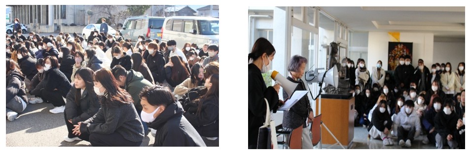 令和7年度防災訓練を実施しました。 2026.01.14 その他 令和8年1月7日(水)『善通寺市に震度6弱の大きな揺れが起こり、その後校内で火災が発生した』という設定で防災訓練を実施しました。南海トラフ地震がいつ起きてもおかしくないと言われている中、1月6日に鳥取、島根で最大震度5強の地震が起きました。共助・自助こそ被災を最小限にとどめる手段です。学生は災害実習で学んだことを確認しながら速やかに避難し、日頃の訓練の大切さを再認識しました。 その他 卒業生との交流会前の記事