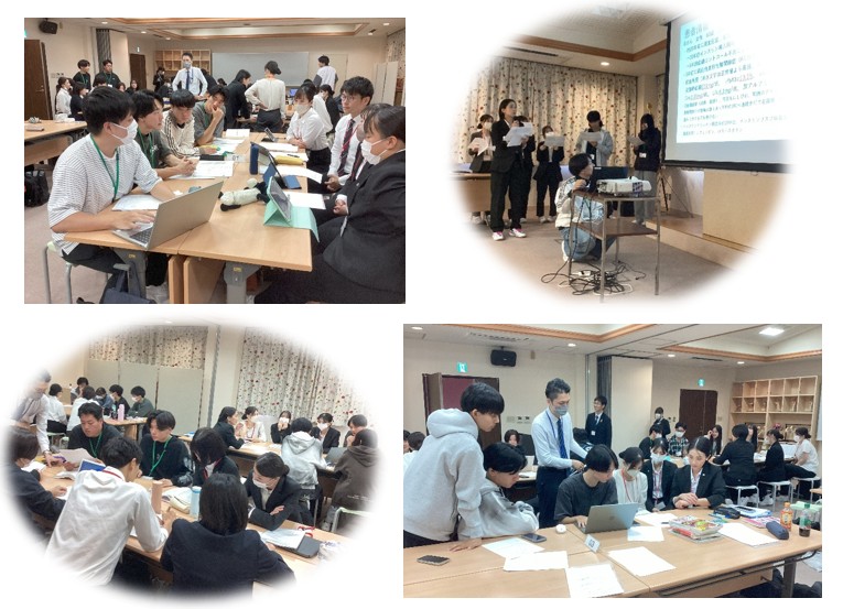 医療・介護・福祉分野において、複数の職種と協働して患者さんに関わる多職種連携が求められるようになり、本校では倉敷リハビリテーション学院との交流学習を通して多職種連携の重要性を学んでいます。今年度は10月7日(火)、第1看護学科2年生が倉敷リハビリテーション学院の学生とグループ演習を行い、症例を用いて患者さんの目標やケア計画を立案し、看護師・理学療法士それぞれの視点から活発な意見交換をしました。他職種の人たちとコミュニケーションをとり、情報を共有し患者さんへのケアを行うことの必要性や、意義について学ぶ貴重な時間となりました。